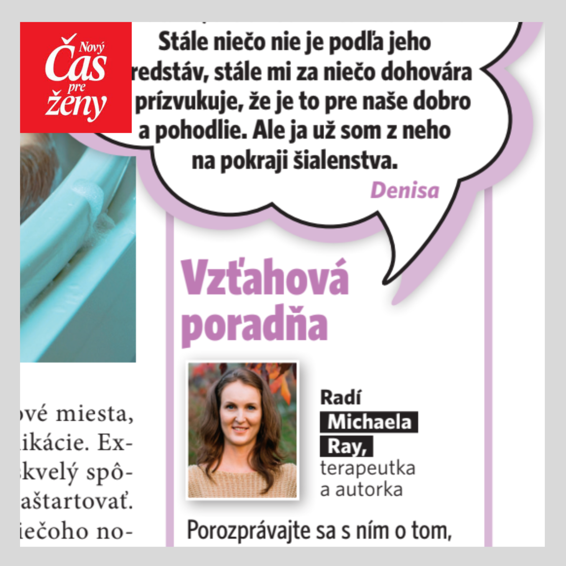 V Novom Čase pre ženy – ako expertku na vzťahové otázky v ich poradni.